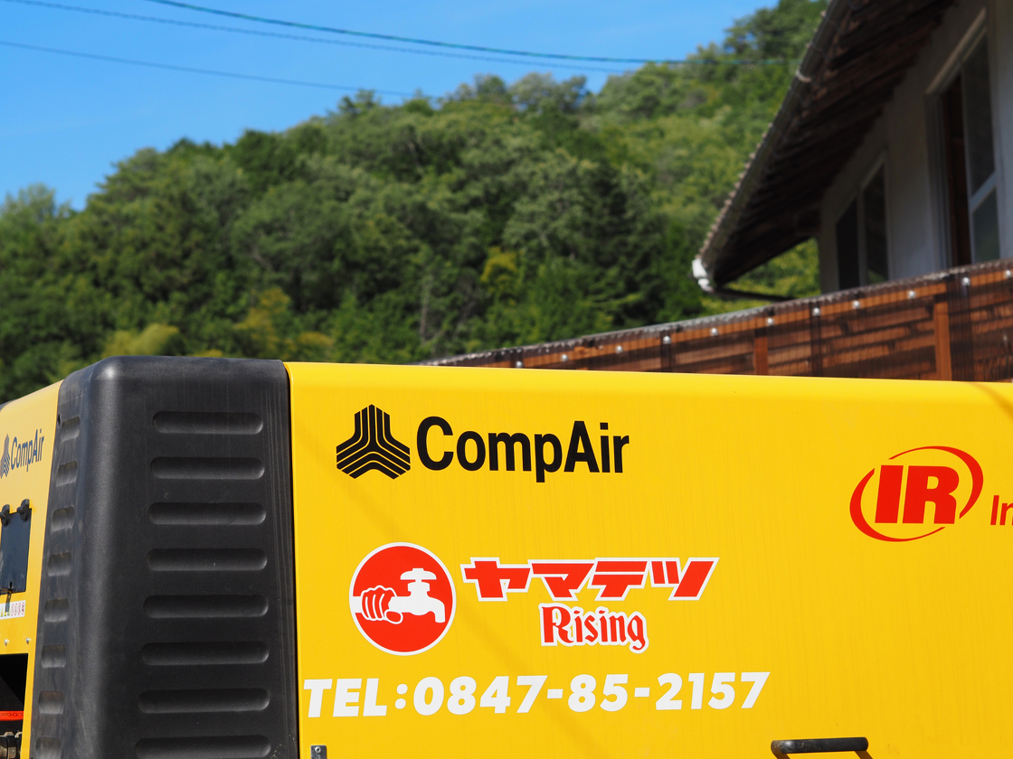 青空にコンプレッサーの黄色が映えます!
